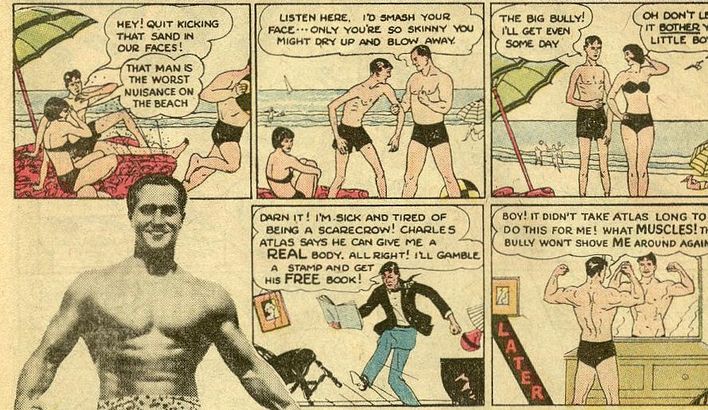 Yo fui uno de esos flacuchos que pidió información sobre el programa del fisicoculturista Charles Atlas. Si no compré el curso fue porque mis padres no estaban locos para darme el dinero, y porque no tenía más de diez años. Me quedé con las ganas.