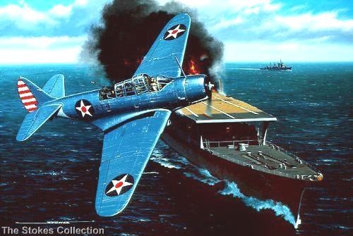 Los bombarderos tuvieron más suerte. Dos bombas cayeron sobre el Lexington, y una sobre el Yorktown, que penetró cuat cubiertas antes de explotar. Ambos portaaviones quedaron muy dañados. Pero la batalla aún no acababa.